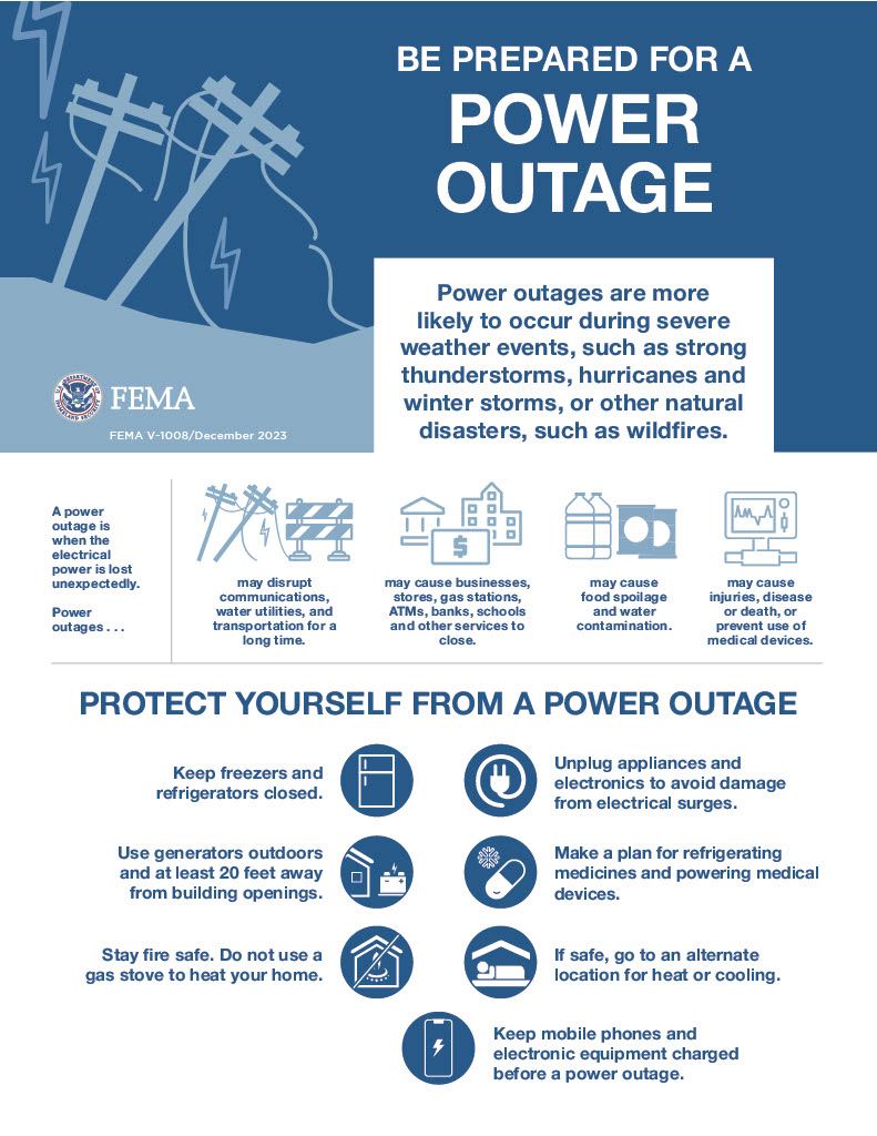 Power outages are more likely to occur during severe weather events, such as strong thunderstorms, hurricanes and winter storms, or other natural disasters, such as wildfires.